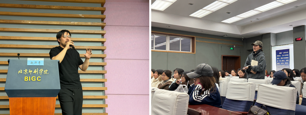 讲座最后,同学们围绕AI数字人的形象设计、IP的差异化打造、相关领域的职业发展机会等话题积极提问。赵汗青结合自身项目经验,一一给予了细致解答。他鼓励同学们主动拥抱新技术,将AI作为延伸个人创意能力的“伙伴”,在掌握专业基础的同时,积极拓宽视野,在实践中探索属于自己的创作路径。